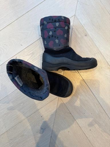 Children's warm winter boots, size 32. Made by the well-known brand Kuoma. The shoes feature a soft and warm lining, perfect for cold weather. The boots have a black and colorful pattern, are durable and comfortable. Suitable for daily wear and outdoor play.