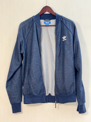 Adidas jacket, size M. Classic design with the three-stripe logo. Suitable for everyday use. Made from high-quality materials for comfort and durability. Color: blue. Condition: good.