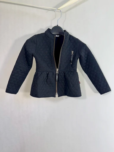 A well-kept black Molo children's jacket. Size 110, perfect for cooler weather. Featuring a zippered pocket, it is both practical and comfortable. With an elegant pattern design, it suits both everyday and more formal occasions. The material is light yet warm.