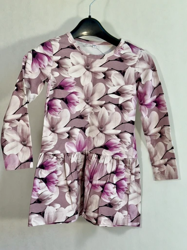 Comfortable and stylish Lenne children's dress in size 128. The soft-toned floral pattern adds elegance. Made mainly of cotton, ensuring comfort and breathability. In good condition with no visible defects.