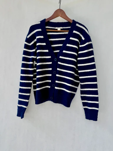 Striped sweater in size M, brand Ropostale. With a dark blue and white color combination. Made in China. Suitable for a casual style and is in good condition. The material feels soft and is suitable for cooler weather.