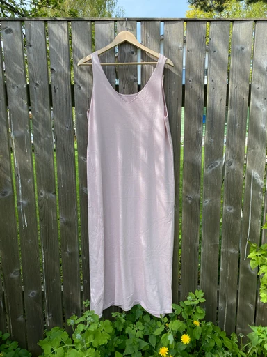 Pink minimalist style maxi dress for women, size M. Made of synthetic material, soft and stretchy. Length approximately 132 cm. Bust measurement approximately 47 cm. Pre-owned, in very good condition, with no visible signs of wear. Suitable for everyday or more formal occasions. If you're unsure about the size, feel free to come and try it on.