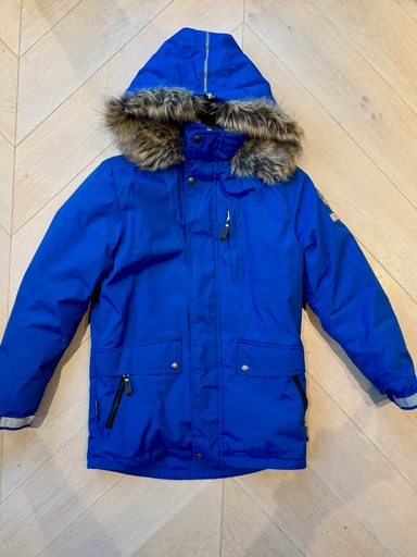 Sinine talvejope kapuutsiga, suurus 152. Jope on pruuni karusnahaga ääres ja mitme taskuga. Sobib hästi külmakraadide jaoks. Heas seisukorras, valmistatud vastupidavast materjalist, mis sobib välitingimustesse.