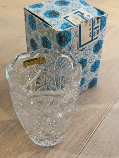 Elegantne Bohemia kristallvaas, valmistatud Tšehhoslovakkias, sisaldab 24% pliioksiidi. Avatud karp, nagu uus. Kõrgus ca 17 cm, sobib suurepäraselt iga interjööri kaunistamiseks.