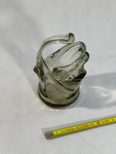 Unikaalne käsitööna valmistatud vintage klaasdekoratsioon. Heas seisukorras, ideaalne kodukaunistuseks või kogumiseks. Läbipaistev klaas lisab ruumile elegantsi ja stiili.