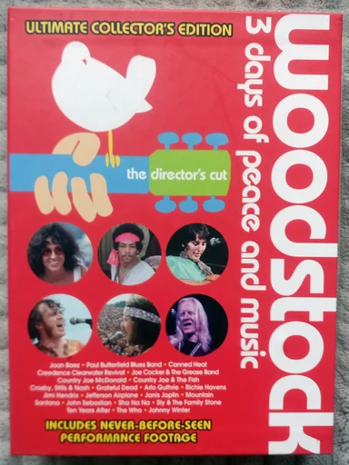 Woodstock: Ultimate Collector's Edition DVD komplekt. Sisaldab kaadreid kolmest muusika- ja rahupäevast. Erilised lisamaterjalid ja varem nägemata kaadrid. Ideaalne muusikahuvilistele ja ajaloo fännidele.