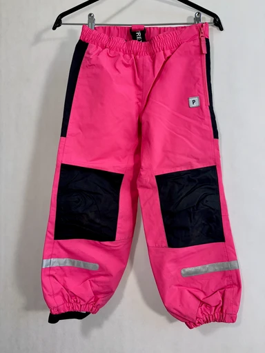 Polarn O. Pyret laste püksid suurus 116, sobivad 5-6-aastastele. Heas seisukorras, erksad roosad toonid mustade detailidega. Elastne vöökoht ja helkurid jalgade allosas. Ideaalne õues mängimiseks ja sportimiseks.
