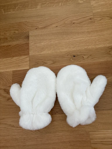 Heas seisukorras valged karvased kindad. Üks suurus sobib kõigele ning need on ideaalsed talviseks hooajaks. Kindad on valmistatud pehmest kunstkarusnahast, pakkudes soojust ja stiili.