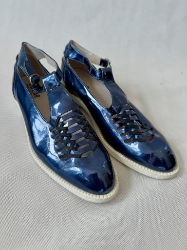 Tegemist on Swear London Viennetta 15 mudeli siniste kingadega, suurus 39. Valmistatud Portugalis. Kingadel on madalad valged tallad ja stiilne läikiv pealispind, millel on nahast dekoratiivsed detailid. Väiksemad jäljed tallal, kuid üldiselt heas seisukorras.