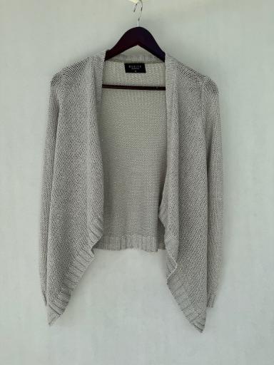 Mohito Collection naiste kardigan, suurus XS. Hea seisukord. Neutraalne hele värv, sobib igapäevaseks kandmiseks. Avatud esiosa ilma kinnitusteta, pikema tagaosa lõikega. Koostis: segukangas, pakkudes mugavust ja stiili.