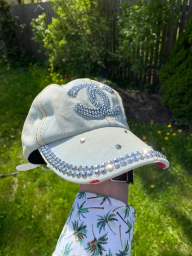 100% puuvillast nokamüts naistele. Kaunistatud kunstkivikestega. Seisukord: kasutatud, esineb nähtavaid pleekimise ja kulumise jälgi. Suurus reguleeritav rihmaga. Kui suuruses pole kindel, tule ja proovi järgi.