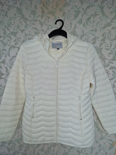 Naiste valge tepitud jope suuruses XL. Jope on kantud üks kord ja nagu uus. Kaks lukuga taskut ees ja kapuutsiga, materjal hingav. Sobib kevade ja sügise hooajaks. Kangas näeb välja väga stiilne ja puhas, nähtavaid defekte ei ole.