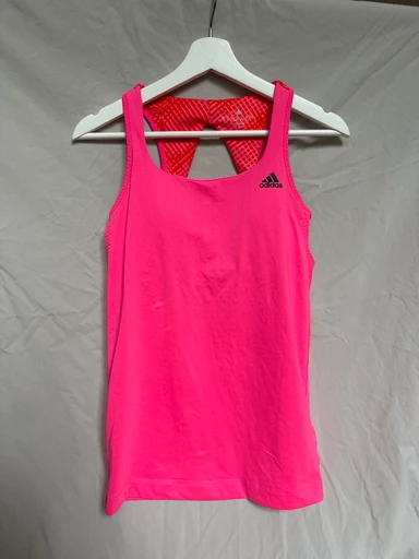 Kasutatud Adidas ClimaCool topp suurusele XS. Värv roosa, valmistatud Indoneesias. Topil on kerged kulumise jäljed, kuid üldine seisukord on hea. Mugav ja hingav materjal sobib treenimiseks.